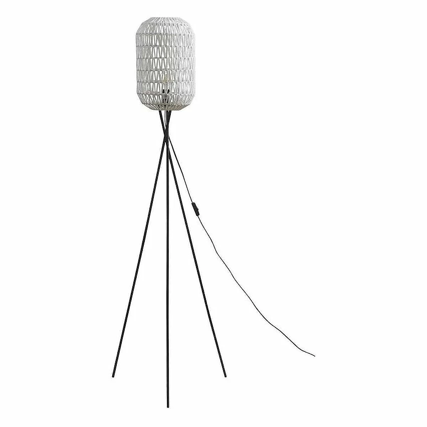 Lampadaire en Métal Noir Abat-jour Aspect Rotin Blanc de la gamme Kindill.