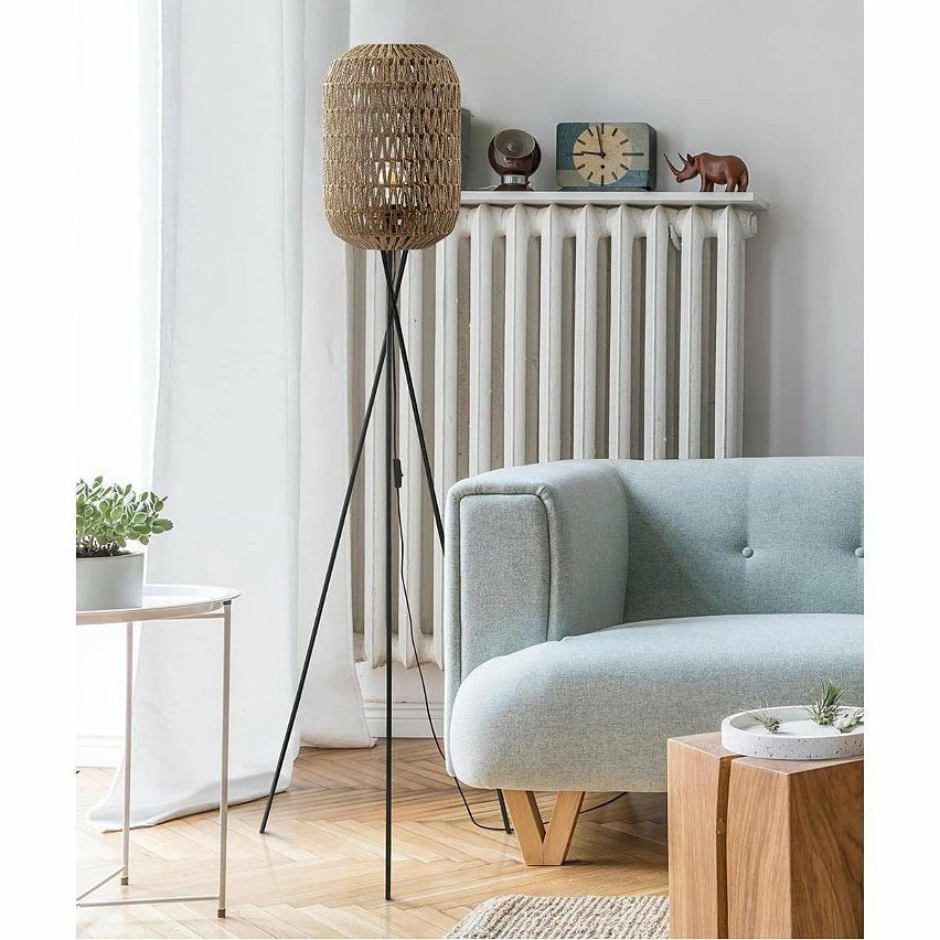 Le piètement de ce lampadaire épuré associé à l’abat-jour imitaion rotin, lui donne un style unique. Gamme de luminaire ultra tendance. Existe en plusieurs coloris.