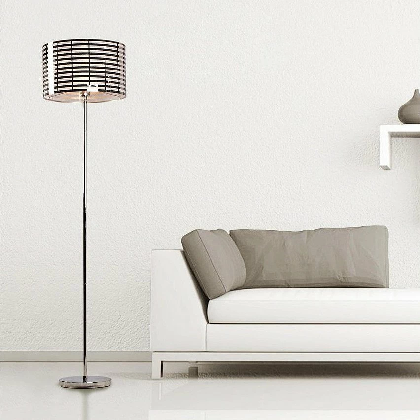 Lampadaire Argenté Abat-Jour Motif Lignes Diamètre 40 cm de la gamme Linea.