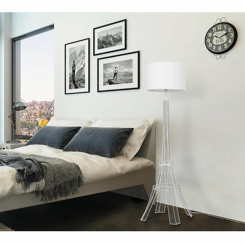 Avec sa structure en Metal et son abat-jour tissu le lampadaire EIFFEL illuminera votre interieur. Matières: Abat-jour tissu Pieds Metal, Dimensions produit: 139 (H) x 41 (l) x 41 (P) cm, Abat-jour: 25 (H) x 40 (DIA) Ampoule: E27 Puissance: 60 W, Couleur(s): Blanc, Poids net: 3 kg
