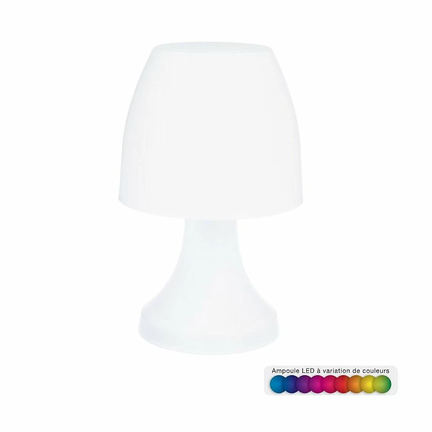 | Dimensions (cm) | ampe champinon à poser. Usage intérieur. Couleur blanc. Couleur lorsque'elle est allumée : Variation de couleur. Hauteur : 19,5 |