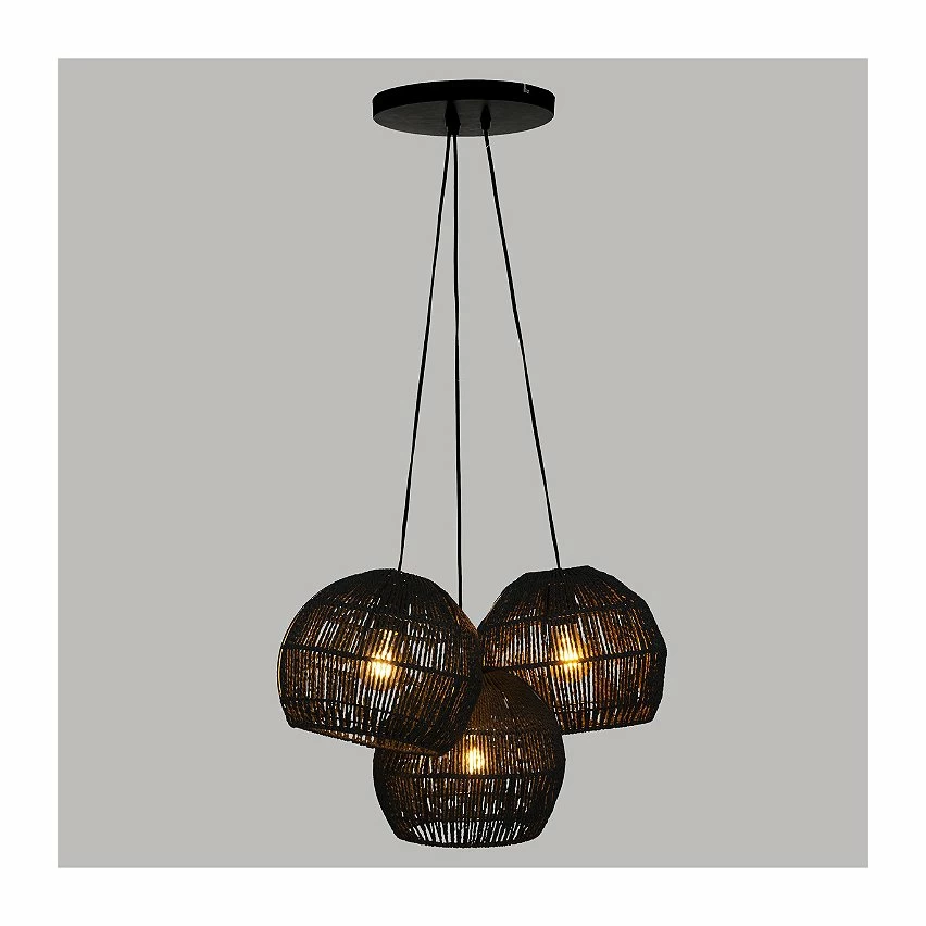 Luminaire Suspension en Corde 3 TĂȘtes D. 25 x H. 95 cm —