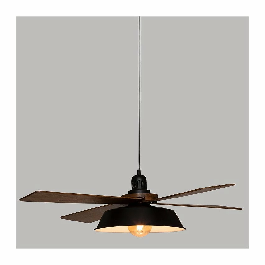 Luminaire Suspension en Métal Noir et Bois D 94 cm —