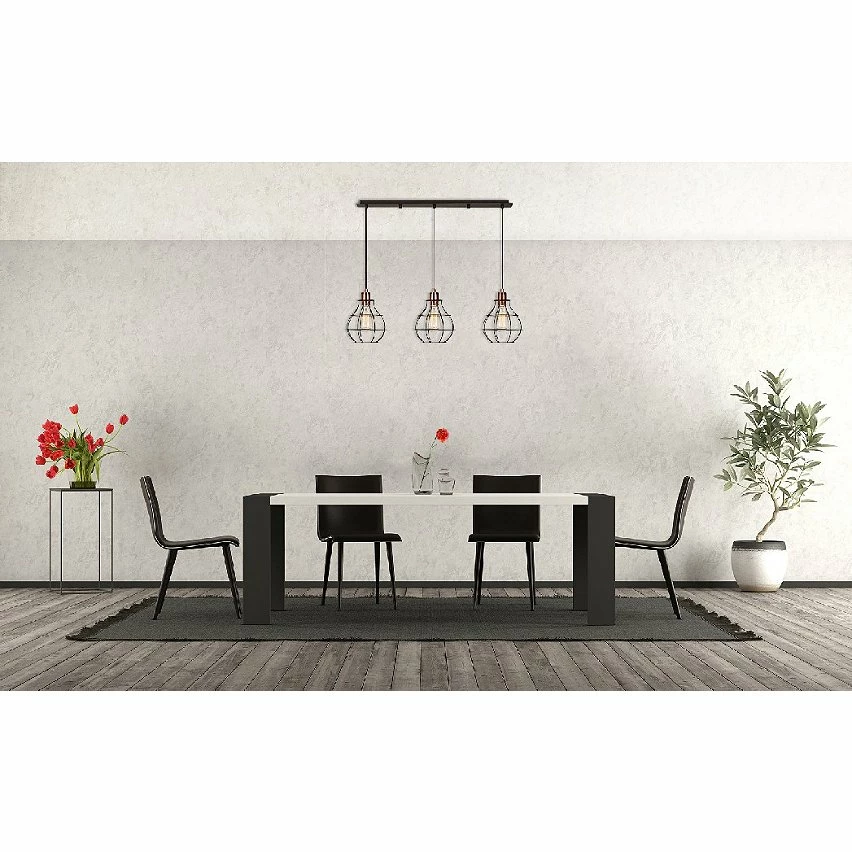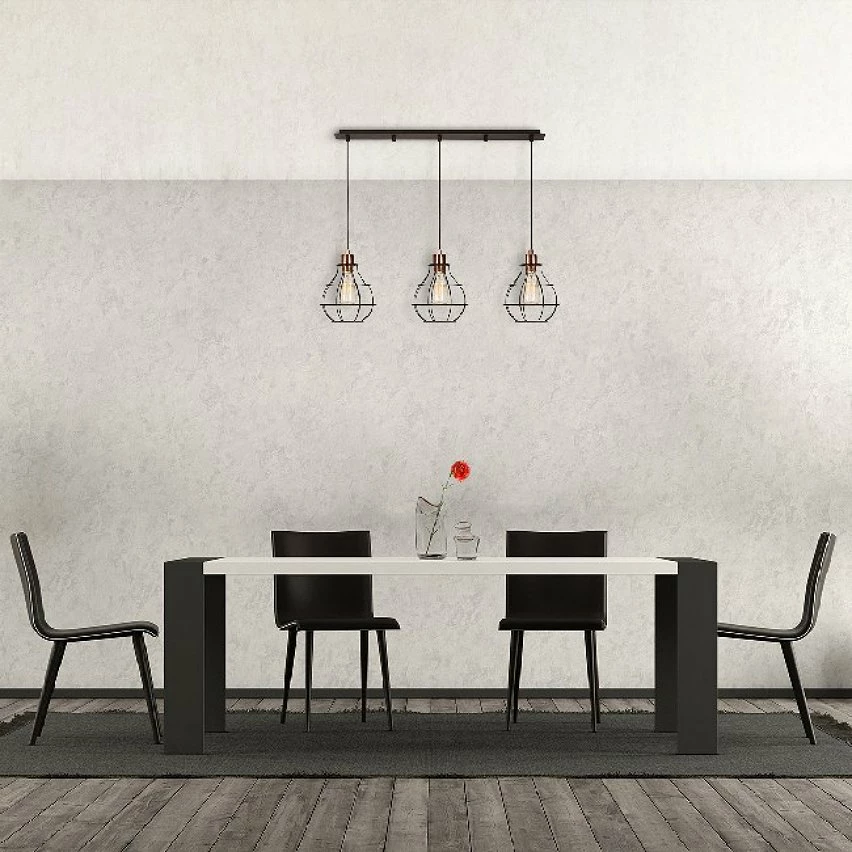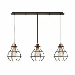 Cette lampe à suspension est la solution parfaite pour illuminer votre maison ou votre bureau avec style. Grùce à sa conception, il est idéal pour le salon et la zone de couchage. Kit de montage inclus, facile à nettoyer, facile à assembler. Colore: Rame, Nero | Dimensione Prodotto: L80xP10xA113 cm | Materiale: Metallo, Vernice Elettrostatica | Potenza: 3 x E27, Max 100W | Peso Prodotto: 3 Kg | Lampadina: Non Inclusa| Peso Imballo: 3,2 Kg | Numero Scatole: 1 | Dimensioni Imballo: 62x25x25 cm
