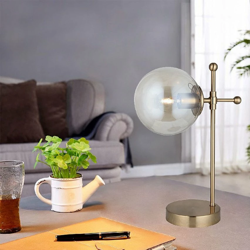 Cette lampe de bureau est la solution parfaite pour illuminer votre maison ou votre bureau avec style. Grâce à sa conception, il est idéal pour le salon et la zone de couchage. Kit de montage inclus, facile à nettoyer, facile à assembler. Couleur: Or | Dimensions: 15x31x43 cm | Matériel: Métal, Verre | Puissance: 1 x E27, Max 40W | Poids du produit: 1,92 Kg | Ampoule: Non incluse| Poids de l’imballage: 2,6 Kg | Nombres de boîtes: 1 | Dimensions de boîtes: 25x44x23 cm