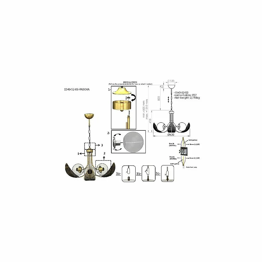 Ce lustre est la solution idĂ©ale pour Ă©clairer avec style votre maison ou votre bureau. GrĂące Ă sa conception, il est idĂ©al pour les espaces de vie et de repos. Kit de montage inclus, facile Ă nettoyer, facile Ă assembler. Couleur: Or | Dimensions: 64x64x95 cm | MatĂ©riel: MĂ©tal, Verre | Puissance: 3 x E27, Max 40W | Poids du produit: 2,19 Kg | Ampoule: Non incluse| Poids de l’imballage: 2,44 Kg | Nombres de boĂźtes: 1 | Dimensions de boĂźtes: 46x46x20 cm