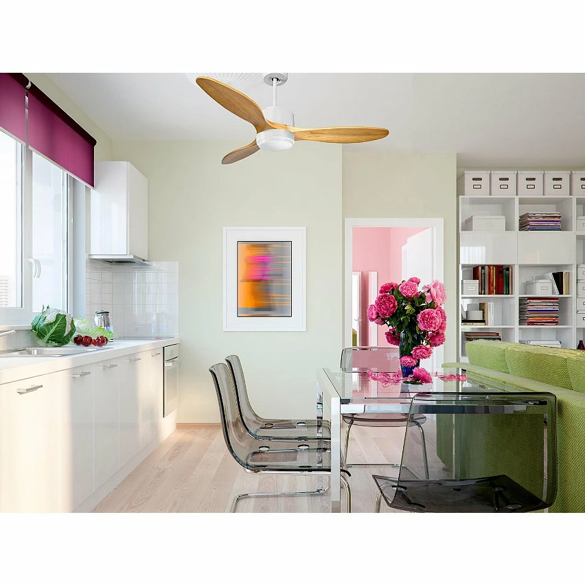 Les pales aérodynamiques en bois confèrent au ventilateur une grande légèreté, et ont été traitées à la main pour être totalement équilibrées et ne pas produire de vibrations. Ce modèle à 3 Pales de couleur marron a un diamètre de 132 cm et atteint une grande vitesse.