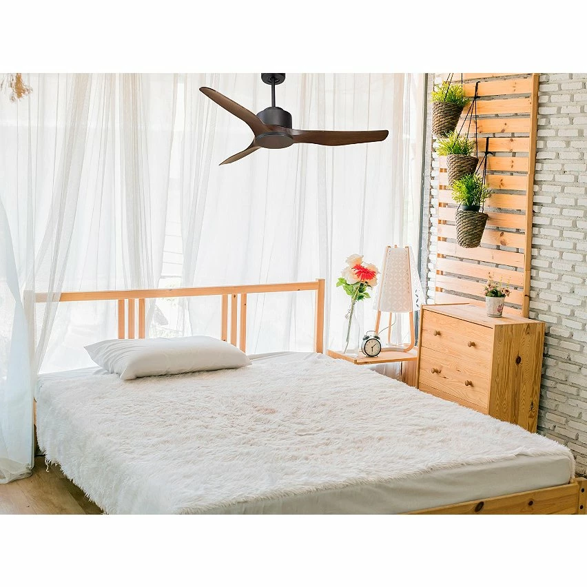 Les pales aérodynamiques en ABS confèrent au ventilateur une grande légèreté, et ont été traitées à la main pour être totalement équilibrées et ne pas produire de vibrations. Ce modèle à 3 Pales marron a un diamètre de 127 cm et atteint une grande vitesse.