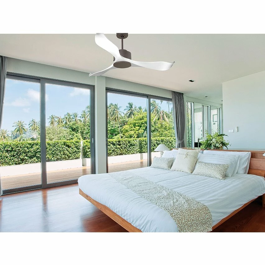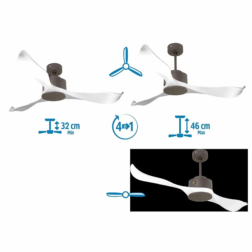Le moteur Ă courant continu noir DC6 permet des installations dans les plafonds jusqu’Ă 27Âș d’inclinaison et est servi avec deux tiges pour ĂȘtre installĂ© Ă la hauteur appropriĂ©e (13,5 cm et 25 cm). Il est parfait pour 2 ou 3 pales, car il dispose d’une fonction auto Ă©quilibrĂ©e. Il prend Ă©galement en charge le kit de lumiĂšre. Ce modĂšle est rĂ©versible, dĂ©sestratificateur d’air, de sorte qu’en hiver, vous pouvez inverser ses pales pour que son mouvement dĂ©place l’air chaud vers le bas, agissant en complĂ©ment de votre systĂšme de chauffage et favorisant une consommation optimisĂ©e. Il comprend Ă©galement un thermostat Ă sa base, de sorte que vous pouvez le programmer pour que le ventilateur fonctionne en fonction de la tempĂ©rature ambiante.