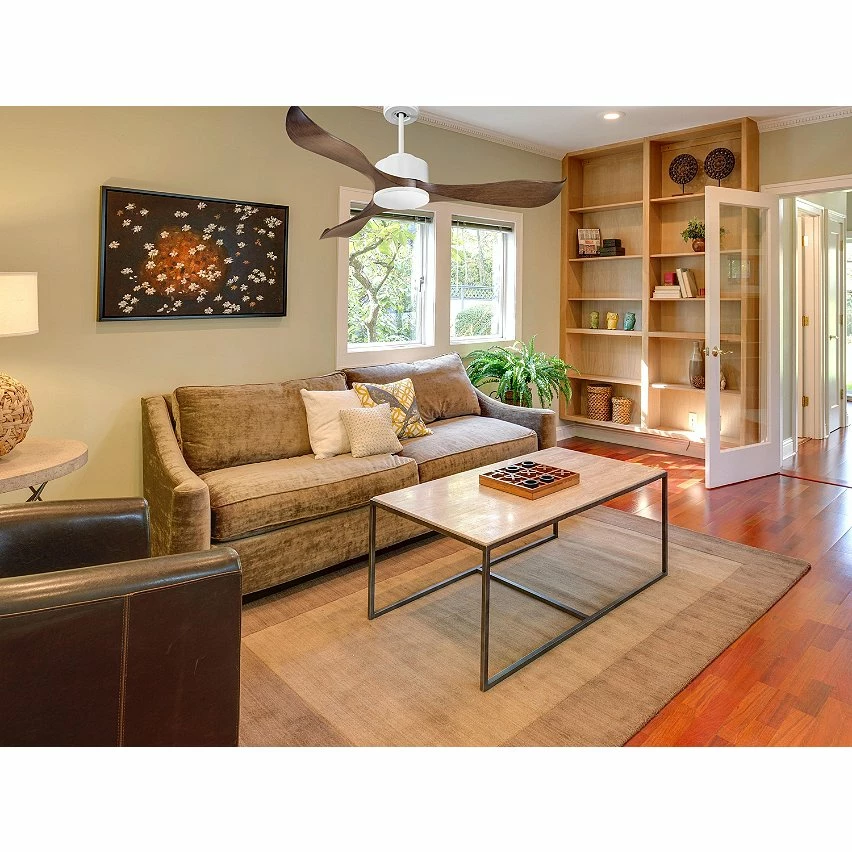 Les pales aérodynamiques en ABS confèrent au ventilateur une grande légèreté, et ont été traitées à la main pour être totalement équilibrées et ne pas produire de vibrations. Ce modèle à 3 Pales marron a un diamètre de 132 cm et atteint une grande vitesse.
