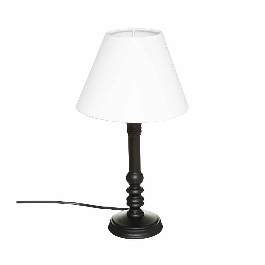 Lampe à poser en Bois Noir et Abat-jour Blanc H 36 cm —