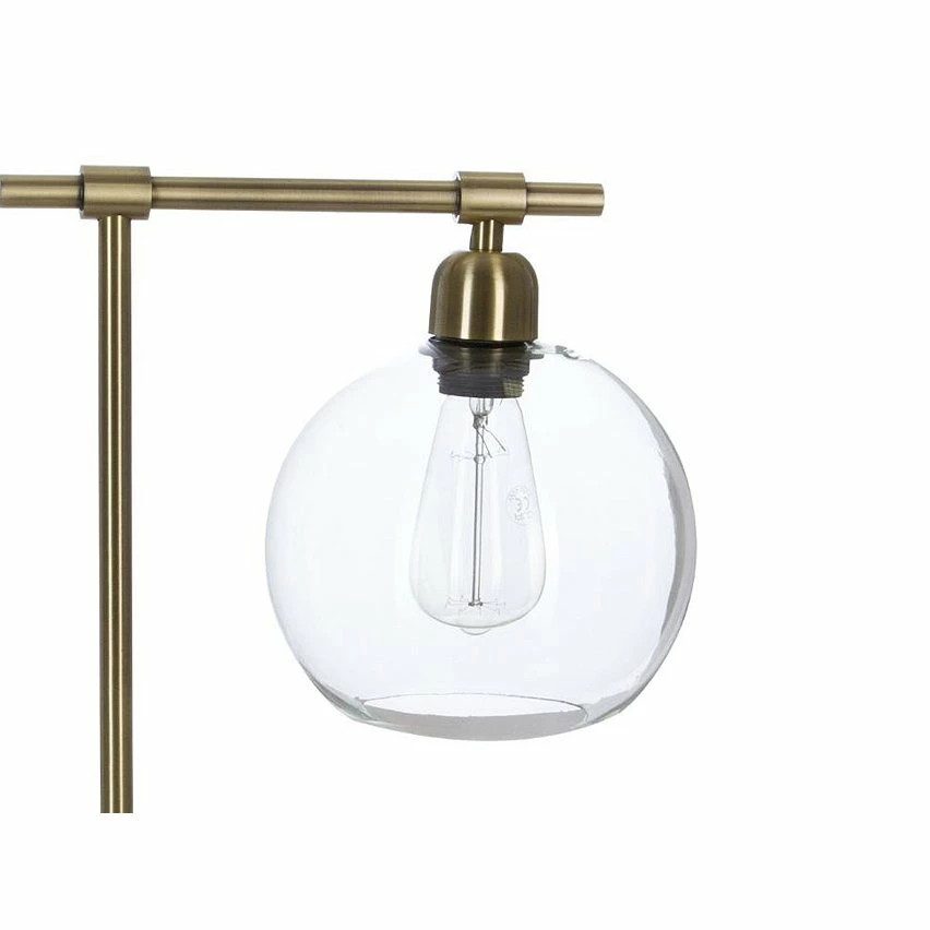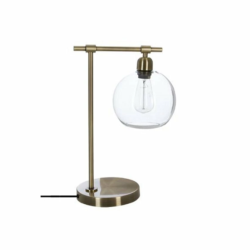 Lampe à poser, pied en métal, abat jour en verre. Couleur : bronze. Dimensions : L. 31,5 x l. 20 x H. 47,5 cm. Alimentation : Secteur / Puissance max : 40W / Douille : E27 (ampoule non incluse).