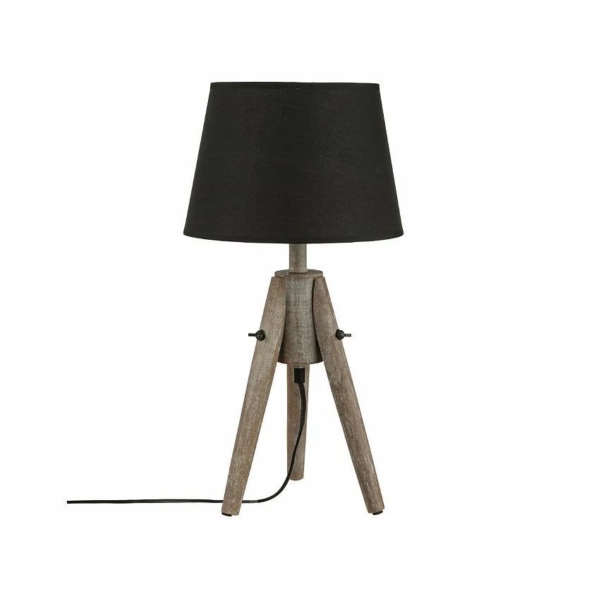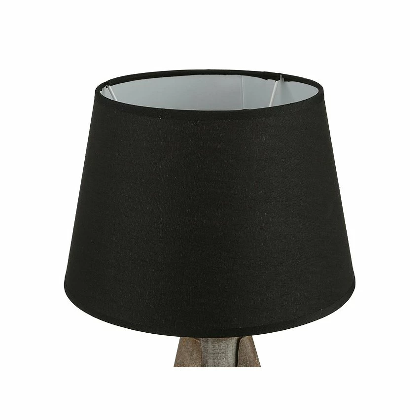 Lampe en bois et abat-jour en forme de cĂŽne. Hauteur 46 cm. Fonctionne avec un secteur et une ampoule E27 de 40W maximum.