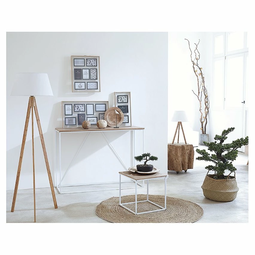 Lampe à poser sur trépied en bambou. Son abat jour en tissu est disponible en 2 coloris : blanc, gris. Alimentation : secteur. Puissance max. 40W. Dimensions : D. 28 x H. 55,5 cm .