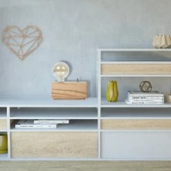 Grosses soldes 🎉 The Home Deco Light Lampe cylindrique métal grillagé socle en bois blanc 🛒