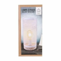 Grosses soldes đ The Home Deco Light Lampe cylindrique mĂ©tal grillagĂ© socle en bois blanc đ