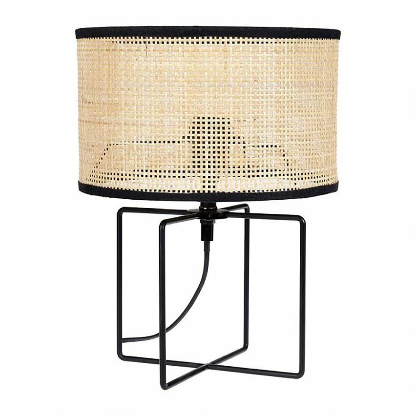 Lampe métal rotin Yuca noir.
