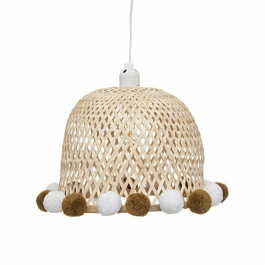 Craquez pour cette suspension en bambou avec pompons blancs et marrons de la marque Atmosphera. IdĂ©ale dans une chambre enfant, elle diffusera une lumiĂšre douce. Fonctionne avec une ampoule douille E27 puissance max 40W. Longueur de cĂąble : 80 cm. Dimensions : D. 28 x H. 20 cm. Poids : 0,22 kg. MatiĂšre : Fer, bambou et polyester. Marque : Atmosphera.Â
