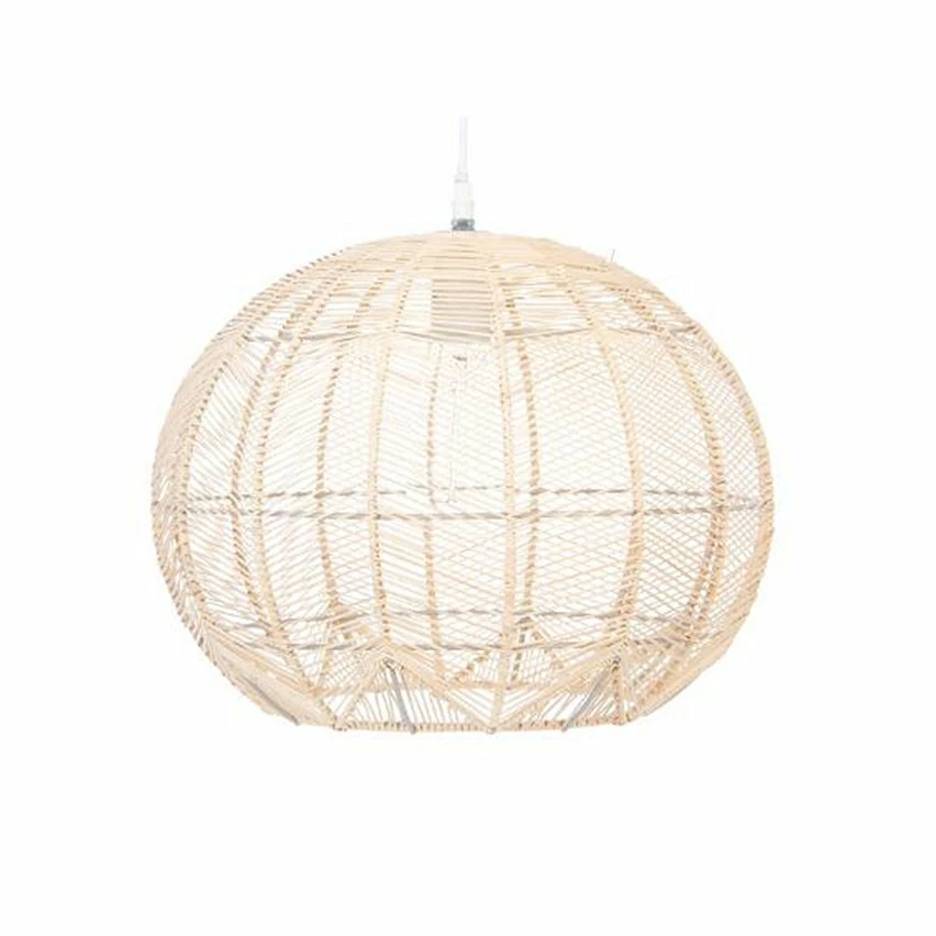 Suspension en rotin tressé de forme ronde. Dimensions : D. 38 x H. 32 cm. Longueur du cùble : 120 cm.